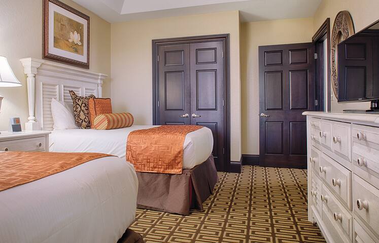 2 bedroom suite luxury condo, orlando, florida. If traveling with a colleague, you'll each have ample privacy. No matter the size of your group, we can provide you with the comfortable accommodations you desire. You will still enjoy our large two bedroom suite but with one extra bed. You will be minutes away from the disney theme parks and walking distance from the vineland premium outlets.